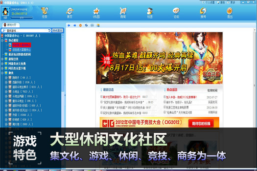 中国游戏中心是集文化、游戏、休闲、竞技、商务为一体的大型休闲文化社区,各类休闲棋牌游戏精彩纷呈。